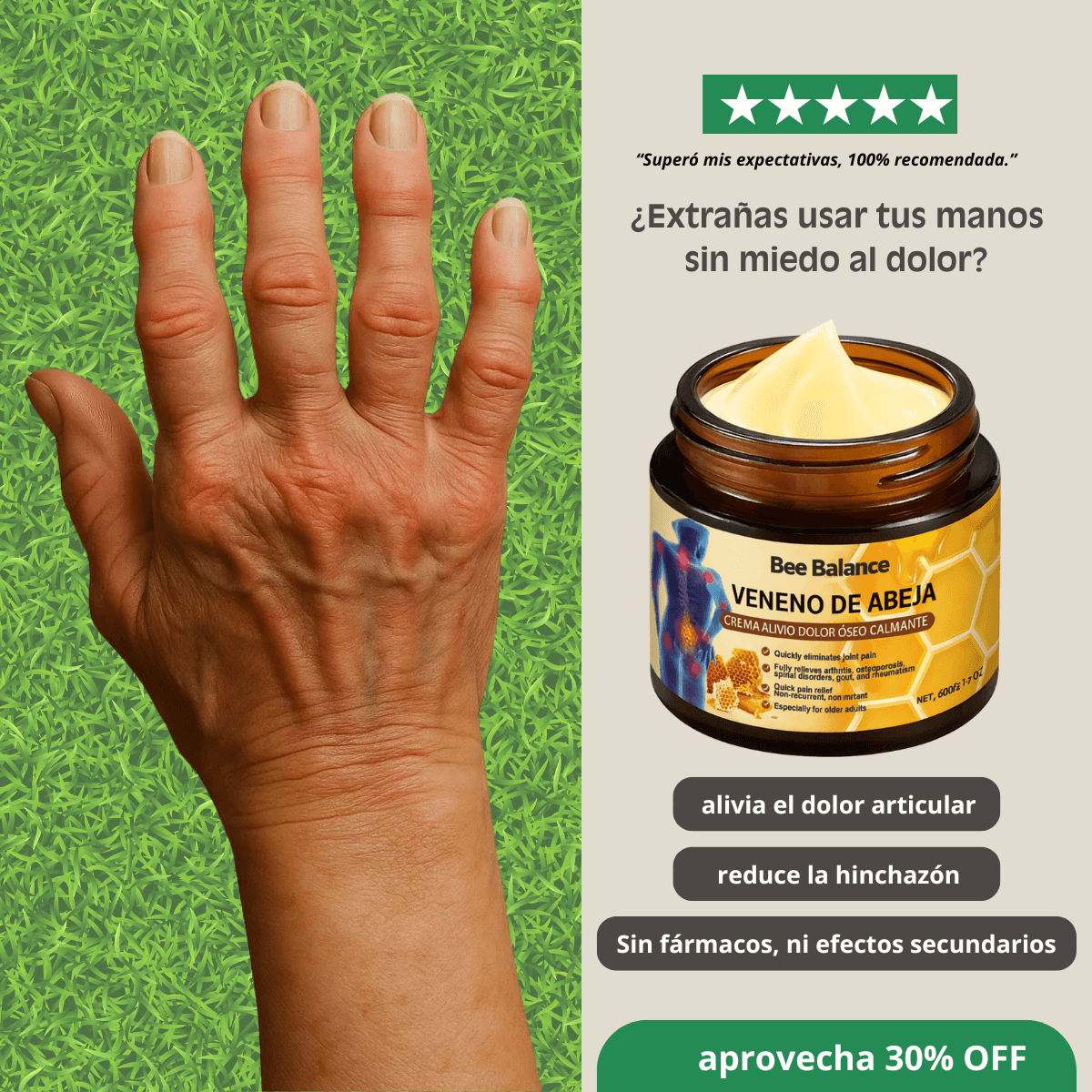 Llevo 15 años con artritis severa. Lo probé todo: medicamentos que me enfermaban, suplementos que no hacían nada, cremas que olían fatal y apenas funcionaban. Estaba a punto de rendirme hasta que encontré BeeBalance, la amo.